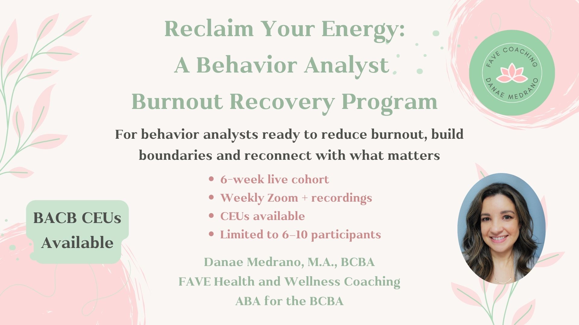 A 6-week live, small-group experience for behavior analysts who want to reduce burnout, build better boundaries, and reconnect with their values using ACT and ABA tools.